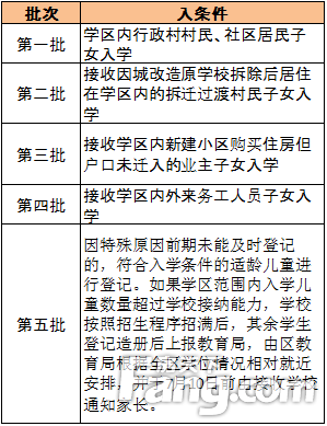 (一)学生类别 1. 本区户籍新生入学 凡年满6周岁(2011年8月31日以前出生)的适龄儿童,依据户口簿(适龄儿童与父母都在一起的户口薄或至少随父、母亲一方的户口薄)到学区内学校登记入小学。 学区范围内集体户上的适龄儿童,家庭未购房,实际居住地为学区内的租赁房。家长持单位出具的无房证明、租房合同、房主房产证明、社区证明到我校进行登记。 2. 城区改造、拆迁过渡居民子女入学 原学区学校因城区改造拆除的在未央拆迁过渡居民的适龄儿童入学持四证(户口簿、租房合同、街道办事处开具的拆迁证明和房主房产证明)在未央区居住地所在学校登记入学。 3. 非本区户籍新生入学 凡符合义务教育学段政策照顾条件的适龄儿童,由学生家长或其法定监护人,按规定时间和要求,持相关证件到居住地学校办理登记手续,由我校根据招生程序依次办理入学手续。 凡不符合义务教育学段政策规定准入条件的适龄儿童,应返回户籍所在地办理登记入学。 4. 进城务工人员随迁子女入学 严格按照《陕西省实施〈中华人民共和国义务教育法〉办法》规定要求,实施“四证审核”,符合条件的家长到我校进行资格审核和信息登记,此项工作6月30日截止。 ⑴就业证明:①进城务工人员随迁子女(以下简称:随迁子女)父母双方和用工单位签订的六个月以上务工合同或个体营业执照。②随迁子女父母因特殊原因(死亡或没有监护能力)无法养育子女,由其他法定监护人(以下简称:其他法定监护人)监护,其他法定监护人本人在西安和用工单位签订的六个月以上务工合同或个体营业执照。 ⑵居住证明:①西安市以外户籍的随迁子女父母双方居住证。②西安市以内户籍,除新城区、碑林区、莲湖区、灞桥区、雁塔区以外,其他七个区县户籍的随迁子女居住证明材料有: A租房户:父母双方或其他监护人身份证、租房合同、房主房产证明、社区证明。 B买房户:父母双方身份证、房屋产权所有人为其父或母的房产证(或购房合同)、社区证明。 ⑶全家户口薄:①随迁子女和父母都在一起的户口薄。②随迁子女随父或母一方的户口薄。 ⑷流出证明:户籍所在地街道办事处或乡镇人民政府出具的在当地没有监护条件的学生流出证明。 申请在我校上学的随迁子女,居住地和其父母至少一方工作单位地点在我学区范围内。 新城区、碑林区、莲湖区、灞桥区、雁塔区户籍的务工人员,其子女入学均在户籍所在地就读。 (二)招生程序 第一步(6月2日至6月5日):接收学区内行政村村民、社区居民、新建小区购买住房且户口已经随迁的业主子女入学登记(在我学区内的未央区户籍的常住户)。 第二步(6月8日至6月10日):接收因城区改造原学校拆除后居住在学区内的拆迁过渡村民子女入学登记(未央区户籍者提供当地街道开具的拆迁证明)。 第三步(6月15至6月17日):接收学区内新建小区购买住房但户口未迁入的业主子女入学登记(并非在我校进行登记的学生就一定可以在我校入学)。如果学位有限,按照买房时间的先后顺序登记造册。 第四步(6月18日至6月19日):接收学区内外来务工人员子女入学登记(并非在我校进行登记的学生就一定可以在我校入学),如果学位有限,登记造册后上报区教育局,由教育局协调安排入学。孩子父母办理的居住证时间在先者优先。 第五步(6月22日至6月30日):接收那些因特殊原因前期未能及时登记的,符合入学条件的适龄儿童进行登记。如果学区范围内入学儿童数量超过学校接纳能力,学校按照招生程序招满后,其余学生登记造册后上报教育局,由区教育局根据全区学位情况相对就近安排,并于7月10日前由接收学校通知家长。 (三)登记时间: 2017年6月2日——6月30日(在工作日内上午8:30至11:30;下午2:30至4:30)在我校招生处进行摸底登记并填写学生信息登记表,来时请携带相关证明的原件及复印件。 (四)以下情况不予安排 1. 空户:因家长择校造成孩子的户籍落在实际并不存在的地址上。 2. 挂户:因家长择校造成孩子的户籍在与户主是非直系亲属关系的户口本上。 3. 假户口等非正常户籍。 五、其他 1. 经我校审核后,凡符合入学条件的适龄儿童,由家长(或监护人)带领,在7月4日以前持相关证件到学校领取《义务教育入学通知书》。 2. 所有小学入学注册登记后,学校将接收新生结果及时上报区教育局,经审批后,各校按照教育部《中小学生学籍管理办法》中“一人一籍,籍随人走”的要求,为新生建立学籍,并按照规范要求统一建立学生电子学籍档案。 3. 按照区教育局的要求,严格按照学区范围、招生办法和招生计划进行招生,按照国家规定的标准,进行合理编班,每班不超过45人。学校不组织任何形式的入学考试。 4. 学校于5月26日将《东前进小学2017年秋季招生工作实施方案》公示于本校门口,使家长明确学校的招生情况,确保2017年义务段入学工作平稳顺利进行。 5. 学校在整个招生过程中将严格执行国家相关政策,不收取任何形式的赞助费、入校费等,也请各位学生家长提高警惕,防止他人利用家长为孩子择校的迫切心理骗取钱财,请社会各界监督。 特别提示: 1.凡因本来不符合入学年龄,而通过非法渠道更改年龄及身份证号码的,由此造成的学生无法建立学籍等一切后果由孩子的监护人负全责。 2.凡提供的户口证明、务工证明、购房(房产)证明、劳务合同、居住证明、拆迁证明、流出证明