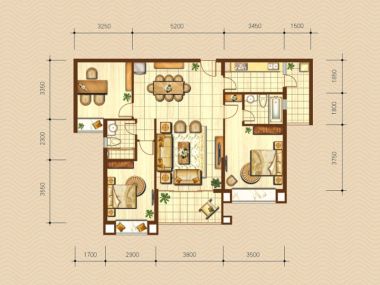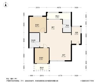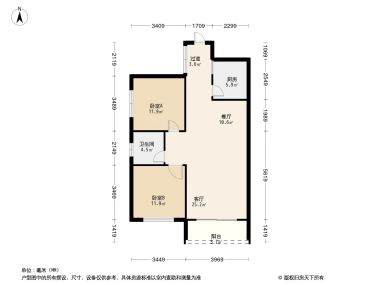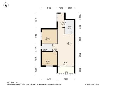 售完华一·红树林2居室户型图 | 建面:86.38㎡ | 朝向:朝南