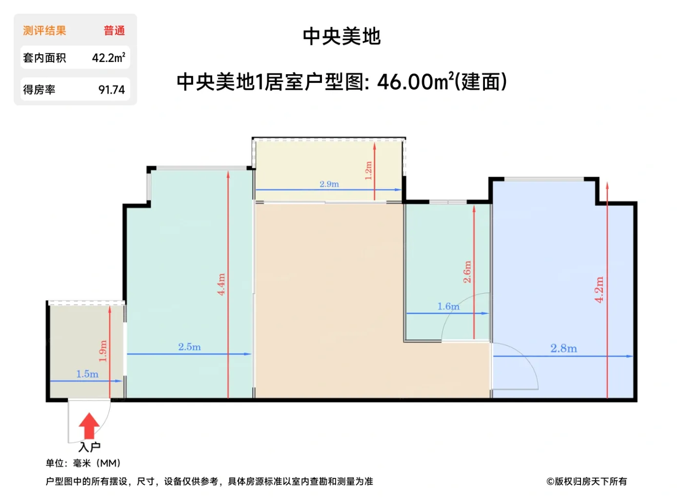 | 卧室 | 10.4 | 2.8 | 4.2 | 良好 |