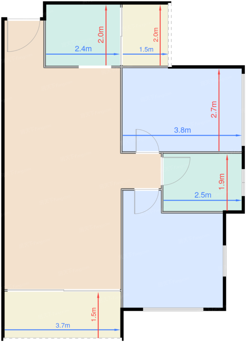 卧室A 9.8㎡ | 面宽3.8m | 进深2.7m