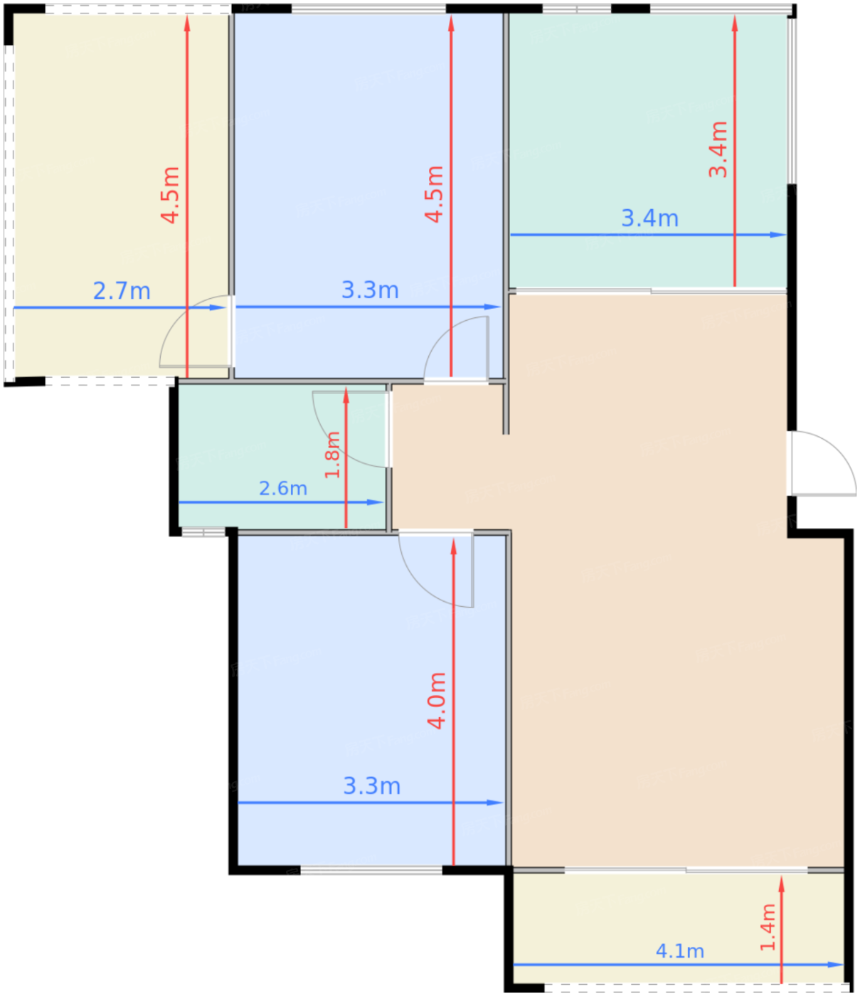 卧室A 14.1㎡ | 面宽3.3m | 进深4.1m