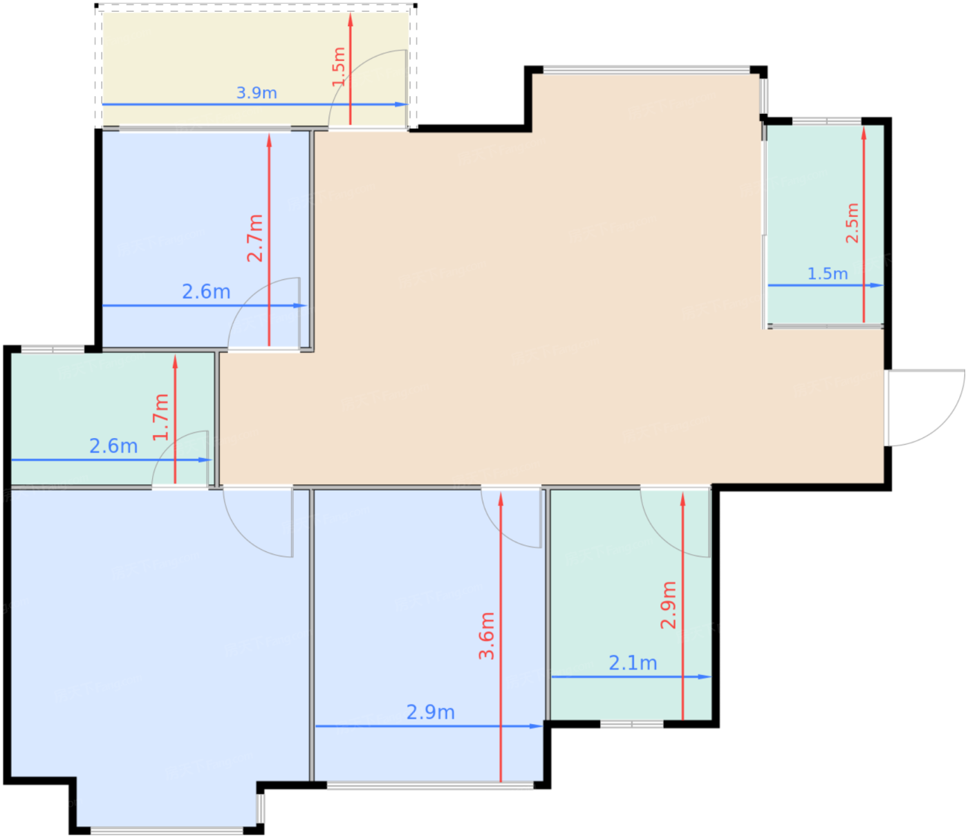 | 阳台 | 5.4 | 3.9 | 1.5 | 良好 |