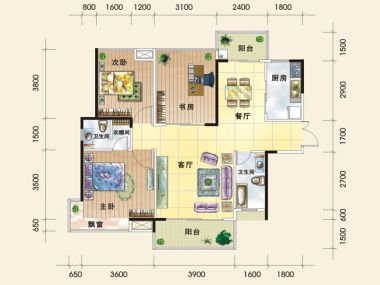 3室1厅2卫1厨