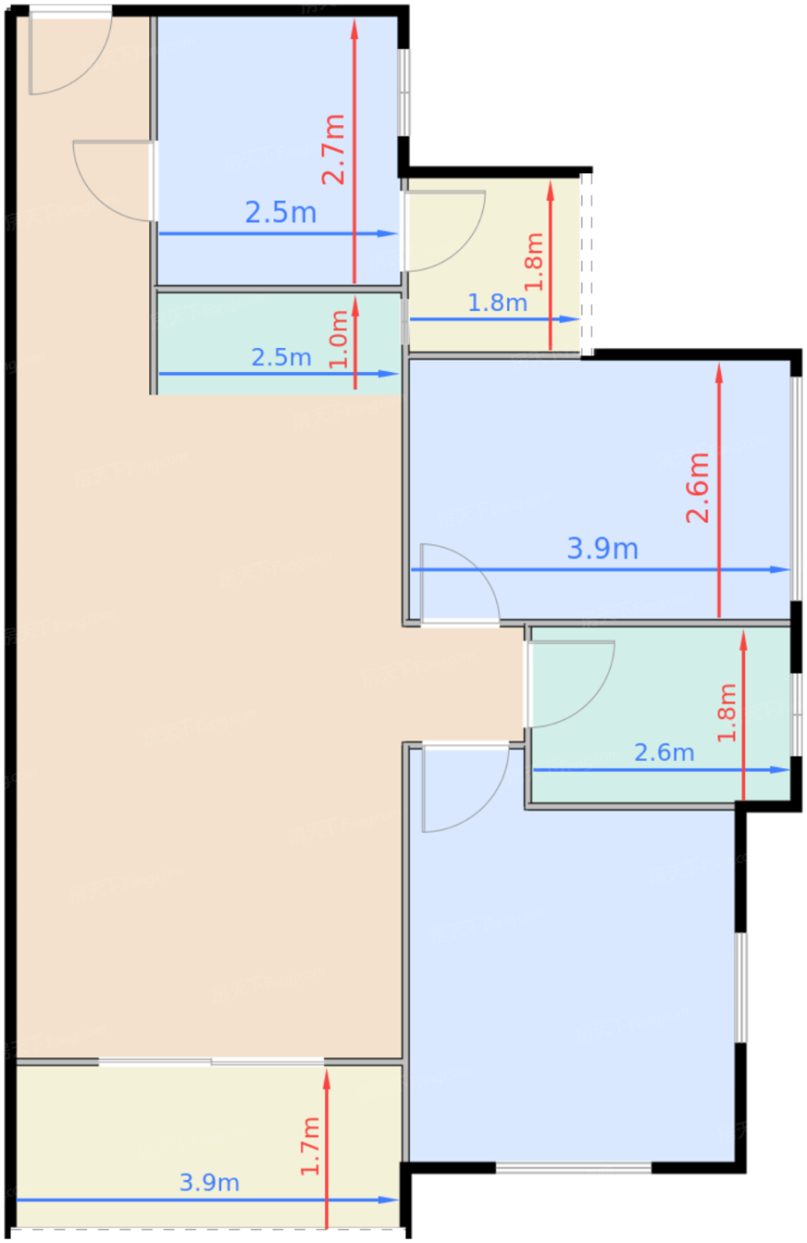 | 卧室B | 9.8 | 3.9 | 2.6 | 良好 |