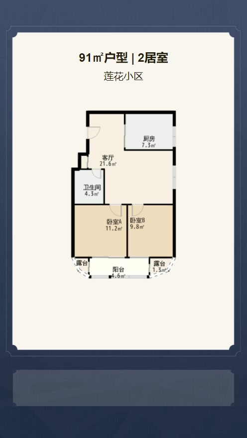 售完莲花小区2居室户型图 | 建面:91.92㎡ | 朝向:东南