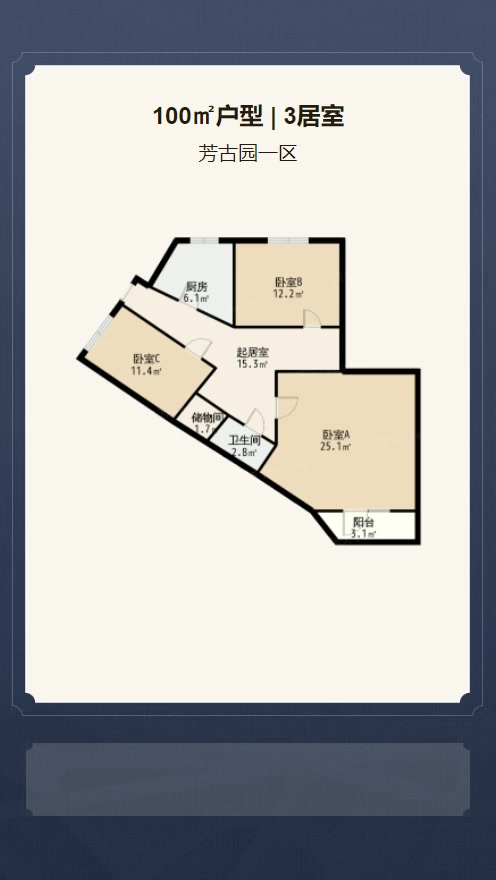 卧室B 12.2㎡ | 面宽3.9m | 进深3.1m