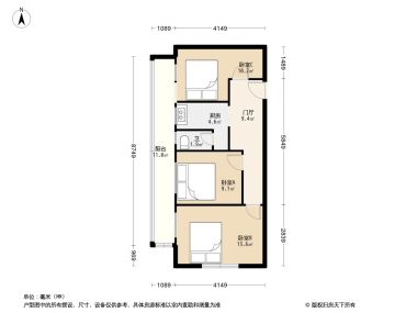卧室C 11.4㎡ | 面宽4.9m | 进深4.2m