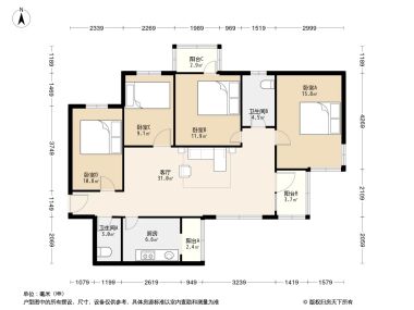- 空间较大卧室C面积足够大,让您在布置房间时更加得心应手。