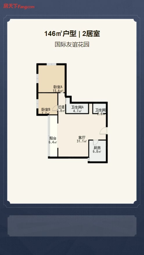 售完国际友谊花园2居室户型图 | 建面:146㎡ | 朝向:西北