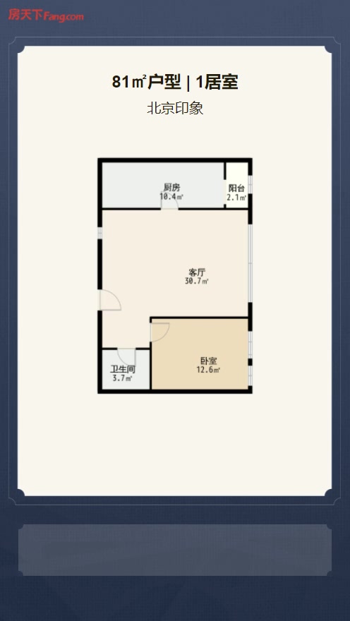 售完北京印象1居室户型图 | 建面:81.7㎡ | 朝向:东西通透