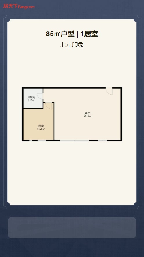 售完北京印象1居室户型图 | 建面:85.6㎡ | 朝向:朝南
