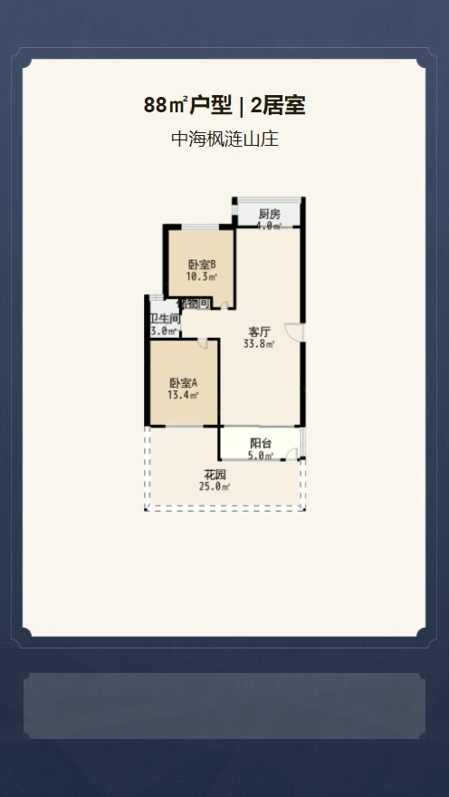 售完中海枫涟山庄2居室户型图 | 建面:88.03㎡ | 朝向:南北通透