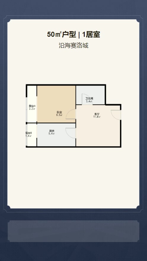 售完沿海赛洛城1居室户型图 | 建面:50㎡ | 朝向:朝西