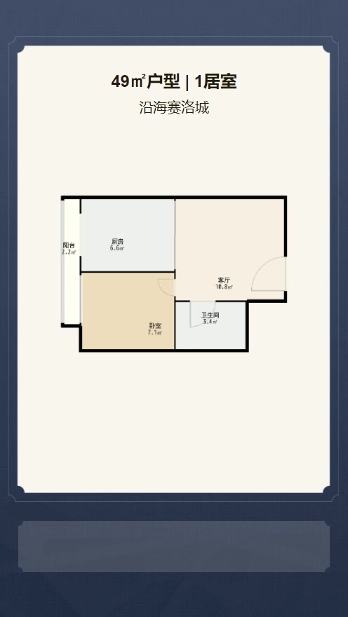 售完沿海赛洛城1居室户型图 | 建面:49.29㎡ | 朝向:朝西