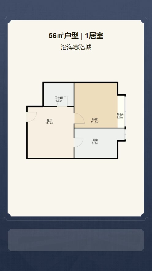 售完沿海赛洛城1居室户型图 | 建面:56.42㎡ | 朝向:朝东