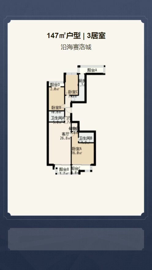 售完沿海赛洛城3居室户型图 | 建面:147.63㎡ | 朝向:南北通透