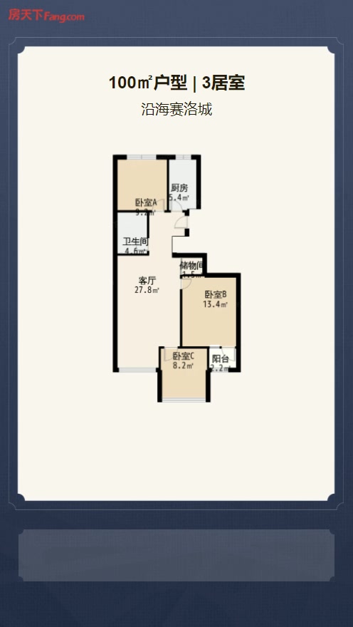 售完沿海赛洛城3居室户型图 | 建面:100.56㎡ | 朝向:南北通透