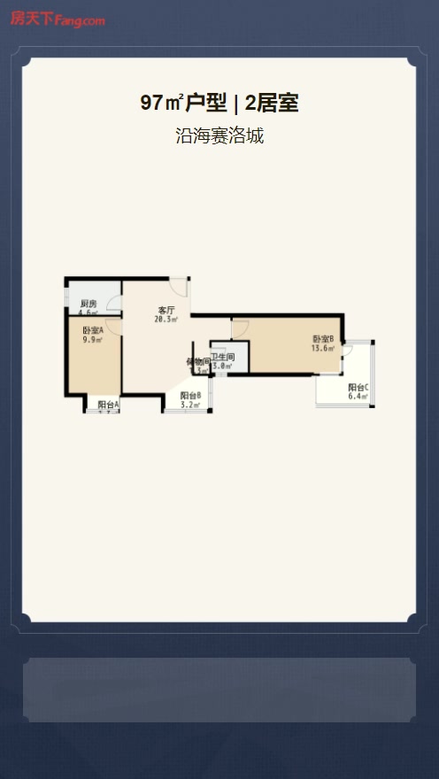 售完沿海赛洛城2居室户型图 | 建面:97㎡ | 朝向:东南