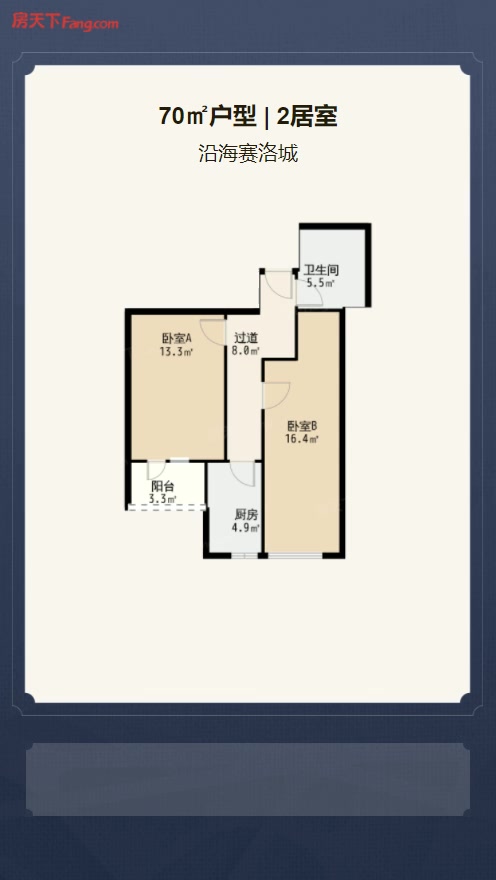 售完沿海赛洛城2居室户型图 | 建面:70.62㎡ | 朝向:朝南
