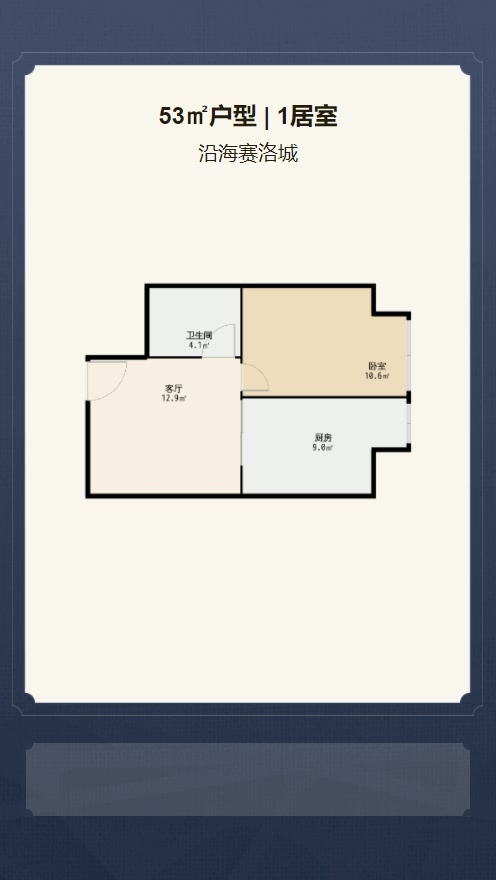 售完沿海赛洛城1居室户型图 | 建面:53.64㎡ | 朝向:朝东