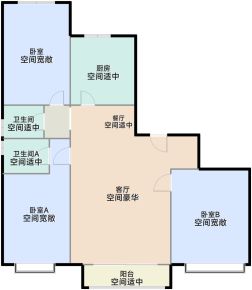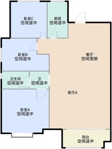 - 空间较大宽敞的卫生间A布局,让干湿分离成为可能,为您打造更加舒适的洗浴空间。