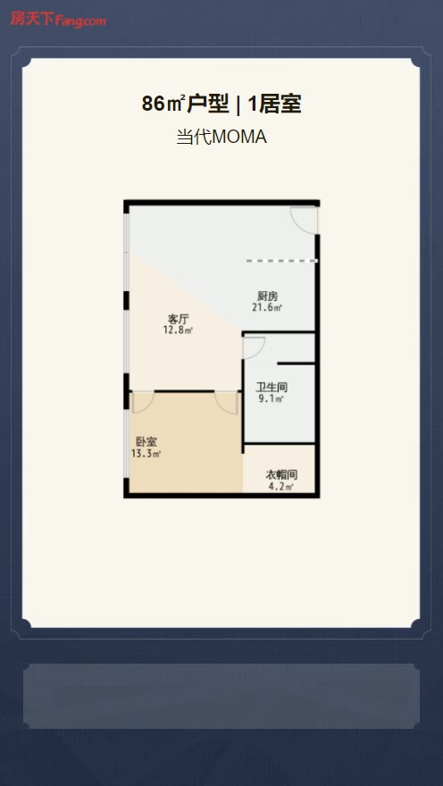 售完当代MOMA1居室户型图 | 建面:86.61㎡ | 朝向:朝西