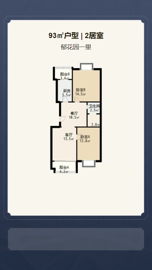 售完郁花园一里2居室户型图 | 建面:93.4㎡ | 朝向:东西通透