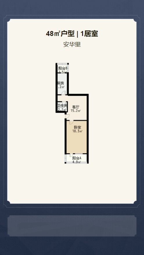 售完安华里1居室户型图 | 建面:48.4㎡ | 朝向:朝南
