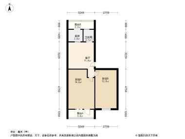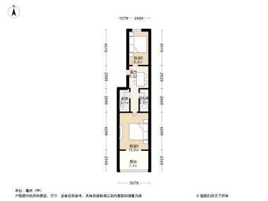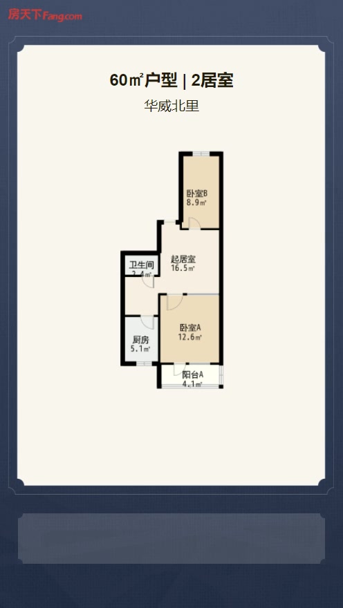 售完华威北里2居室户型图 | 建面:60.1㎡ | 朝向:南北通透