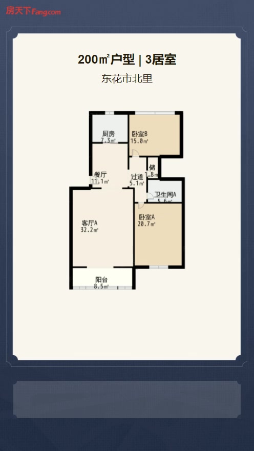 售完东花市北里3居室户型图 | 建面:200.33㎡ | 朝向:南北通透