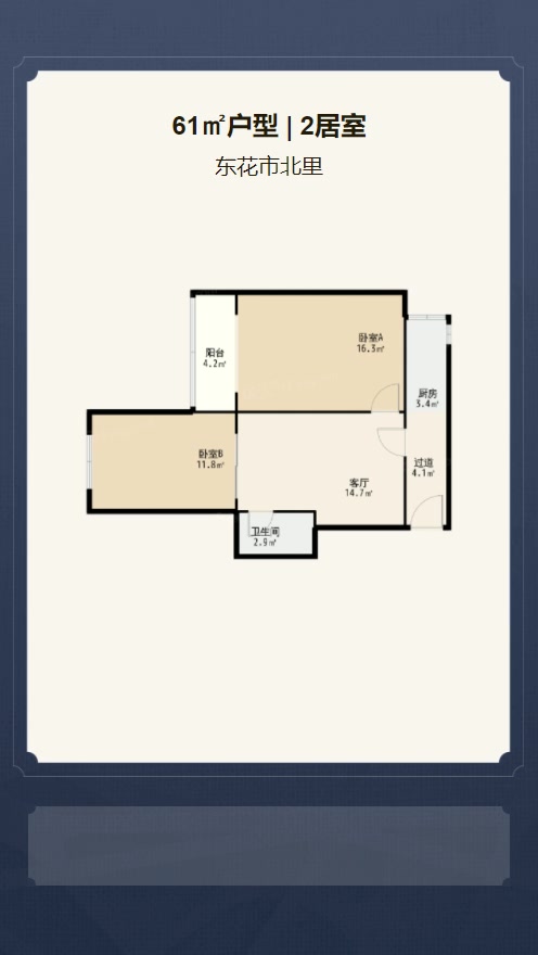售完东花市北里2居室户型图 | 建面:61.99㎡ | 朝向:朝西