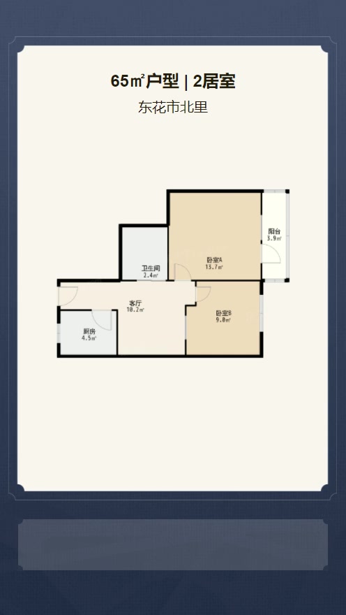 售完东花市北里2居室户型图 | 建面:65.79㎡ | 朝向:朝西