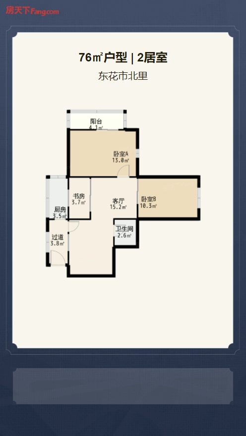 售完东花市北里2居室户型图 | 建面:76.85㎡ | 朝向:东北