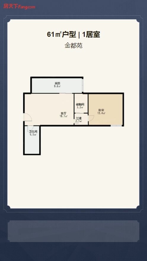 售完金都苑1居室户型图 | 建面:61㎡ | 朝向:朝南