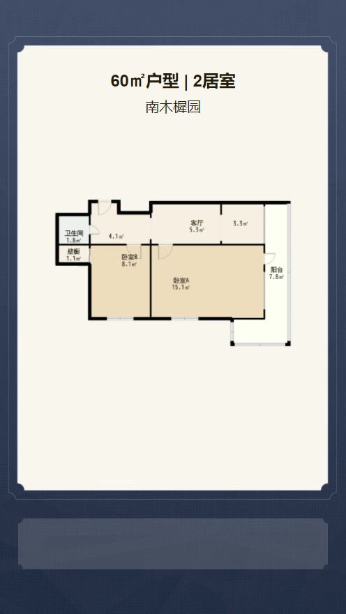 售完南木樨园2居室户型图 | 建面:60㎡ | 朝向:东南