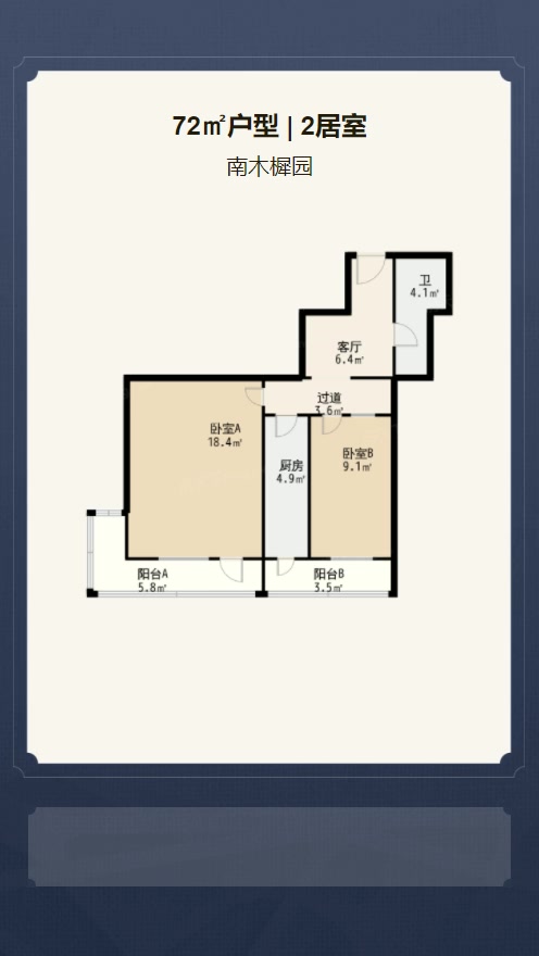 售完南木樨园2居室户型图 | 建面:72.7㎡ | 朝向:朝南