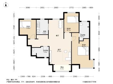 *施工有误差,交付时无法与户型图一致,仅供参考,最终以开发商合同为准