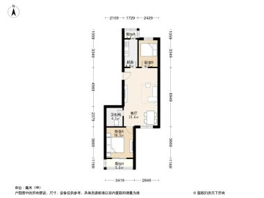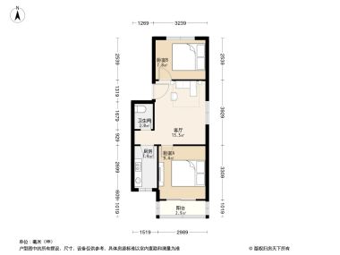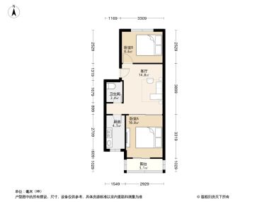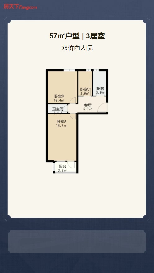 售完双桥西大院3居室户型图 | 建面:57㎡ | 朝向:南北通透