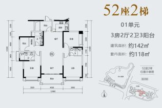 - 3室2厅2卫 在售142.00㎡106.5万元/套