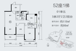 - 3室2厅2卫 在售132.00㎡99万元/套