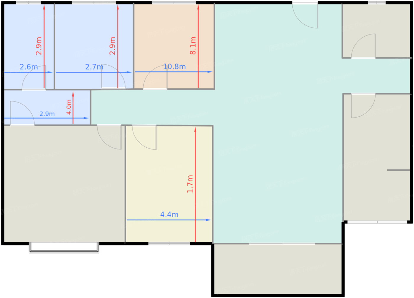 客厅 42.8㎡ | 面宽10.8m | 进深8.1m