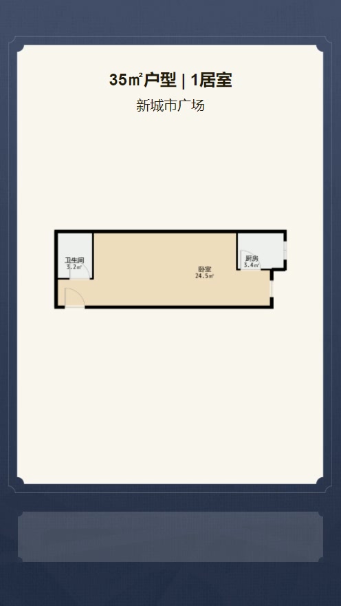 售完新城市广场1居室户型图 | 建面:35.41㎡ | 朝向:东南
