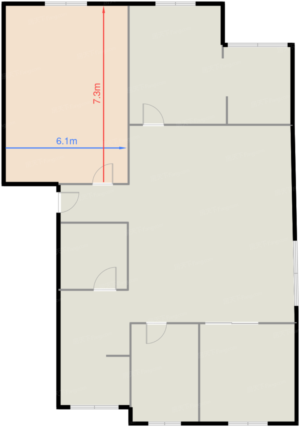 客厅 34.5㎡ | 面宽6.1m | 进深7.3m