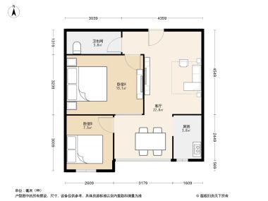 室内空间对应面积。