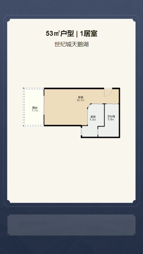 售完世纪城天鹅湖1居室户型图 | 建面:53.38㎡ | 朝向:朝南