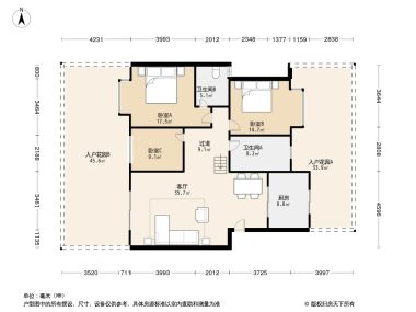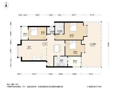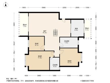 室内空间对应面积。