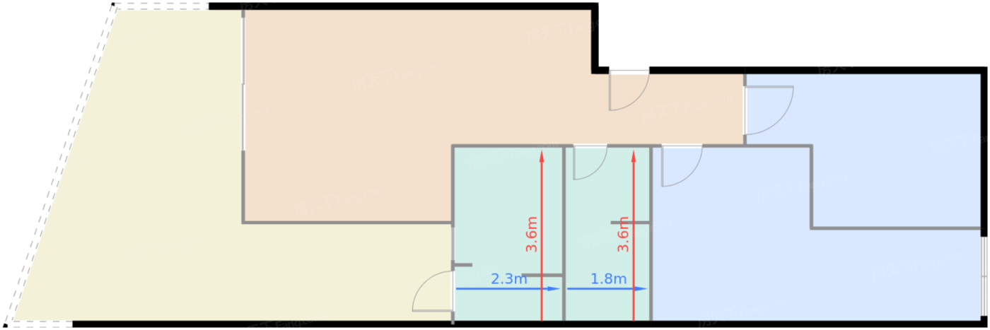 卫生间 6㎡ | 面宽1.8m | 进深3.6m