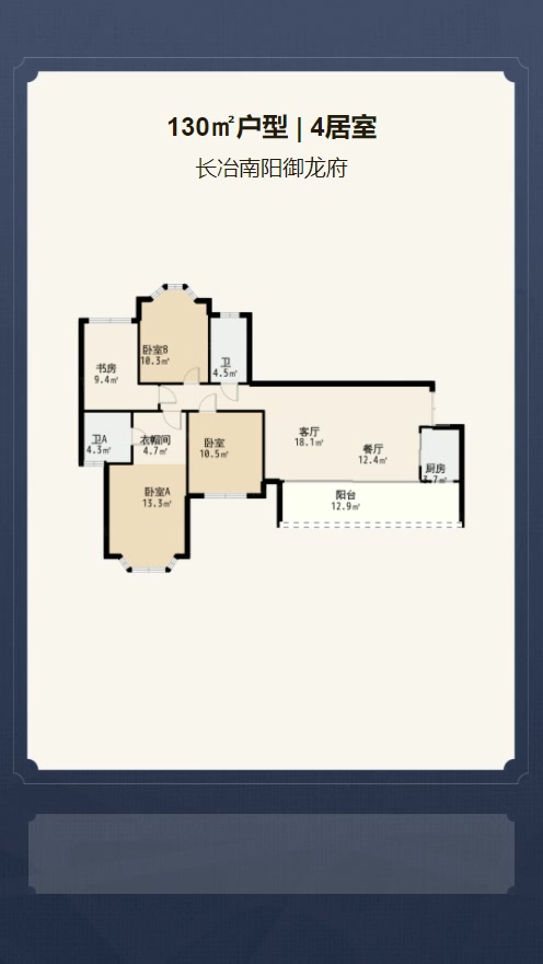 售完6-7#标准层D户型 | 建面:130㎡ | 朝向: