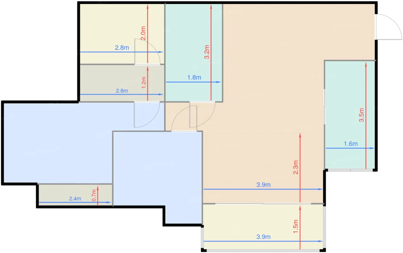 客厅 9㎡ | 面宽3.9m | 进深2.3m