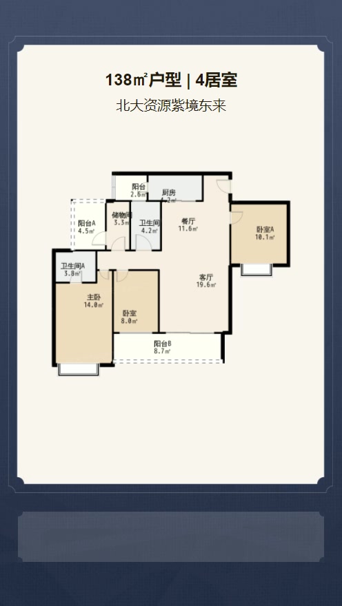 卧室A 10.1㎡ | 面宽3.1m | 进深3.3m